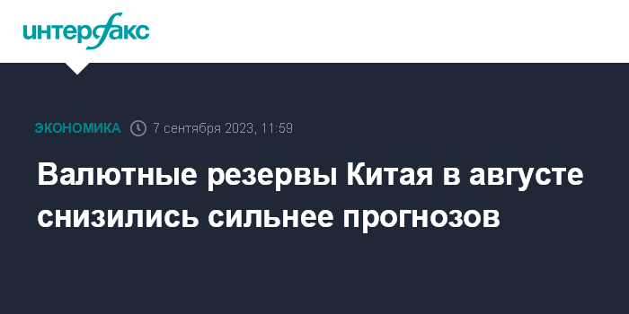 Валютные резервы Китая в августе снизились сильнее прогнозов