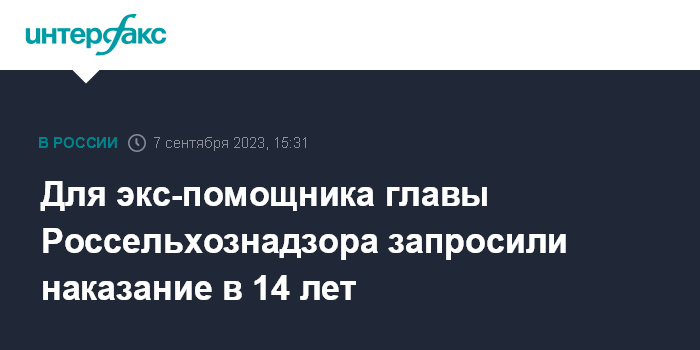 Для экс-помощника главы Россельхознадзора запросили наказание в 14 лет