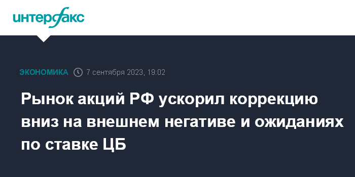 Рынок акций РФ ускорил коррекцию вниз на внешнем негативе и ожиданиях по ставке ЦБ