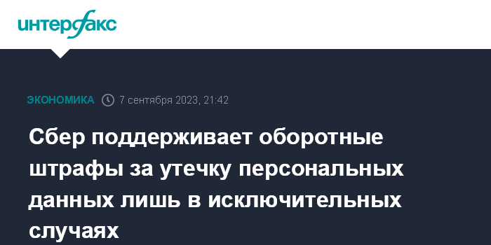 Сбер поддерживает оборотные штрафы за утечку персональных данных лишь в исключительных случаях