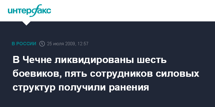 Москва. 25 июля. INTERFAX.RU - Шестеро боевиков уничтожены в Чечне в ходе проведения спецоперации, сообщил министр внутренних дел МВД РФ по Чеченской республике Руслан Алханов.
