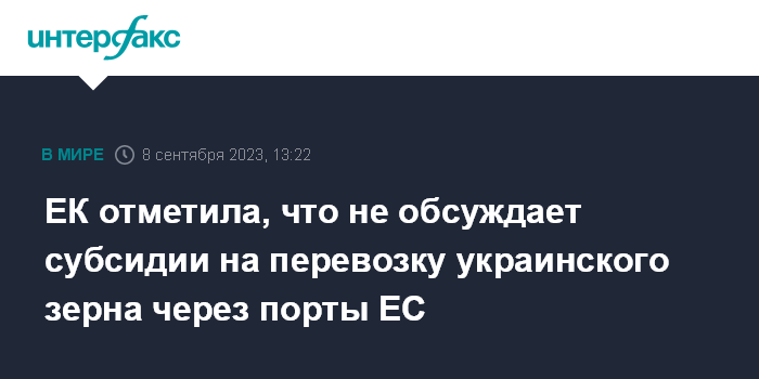 ЕК отметила, что не обсуждает субсидии на перевозку украинского зерна через порты ЕС