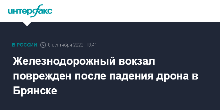 Железнодорожный вокзал поврежден после падения дрона в Брянске
