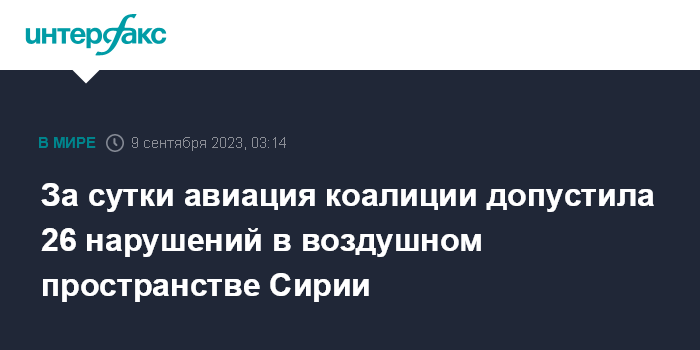 За сутки авиация коалиции допустила 26 нарушений в воздушном пространстве Сирии