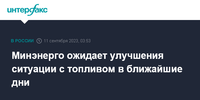 "Мы каждый день ожидаем выхода из зоны ремонта НПЗ, надеемся, что в ближайшие дни мы увеличим объемы производства продукции. Тема обсуждалась с нефтяниками в правительстве, в первую очередь для того, чтобы обеспечить поставки (топлива - ИФ) сельхозпроизводителям. (...) Мы ожидаем, что ситуация должна улучшиться", - сказал он.