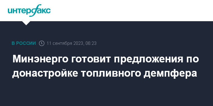 Москва. 11 сентября. INTERFAX.RU - Минэнерго РФ пока обсуждает варианты корректировки топливного демпфера, сообщил журналистам глава министерства Николай Шульгинов.