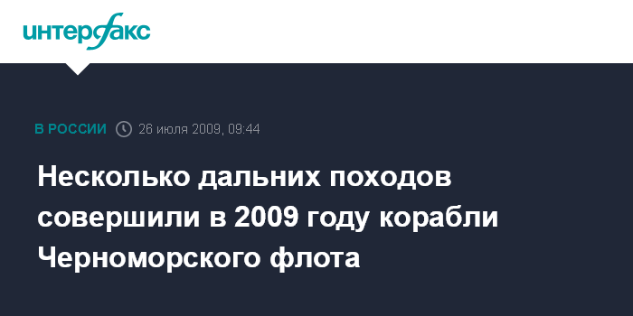 Севастополь. 26 июля. INTERFAX.RU - Корабли Черноморского флота России в 2009 году выполнили ответственные задачи морского плавания в Средиземноморье, сообщил "Интерфаксу-АВН" помощник командующего флотом капитан 1 ранга Андрей Крылов.
