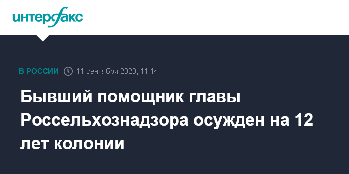 Бывший помощник главы Россельхознадзора осужден на 12 лет колонии