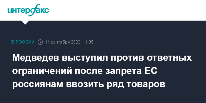 Медведев выступил против ответных ограничений после запрета ЕС россиянам ввозить ряд товаров