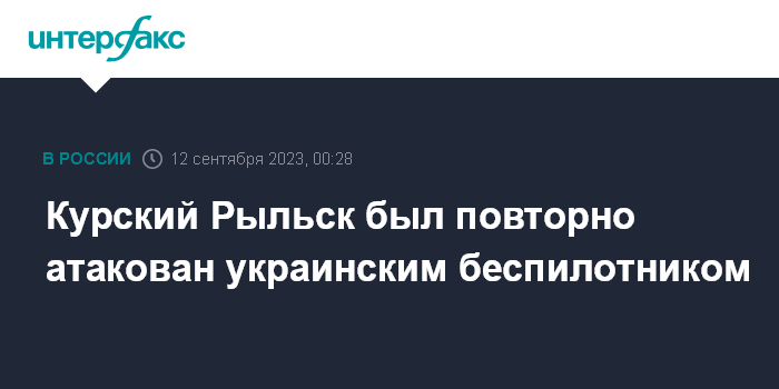 Москва. 12 сентября. INTERFAX.RU - Губернатор Курской области Роман Старовойт сообщил о повторной атаке украинским беспилотником на город Рыльск.