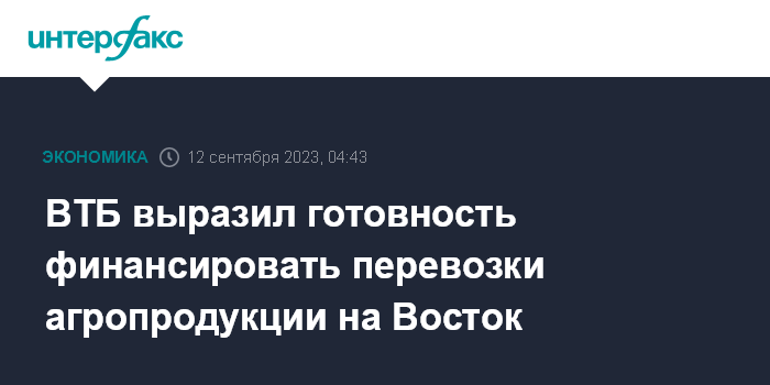 ВТБ выразил готовность финансировать перевозки агропродукции на Восток