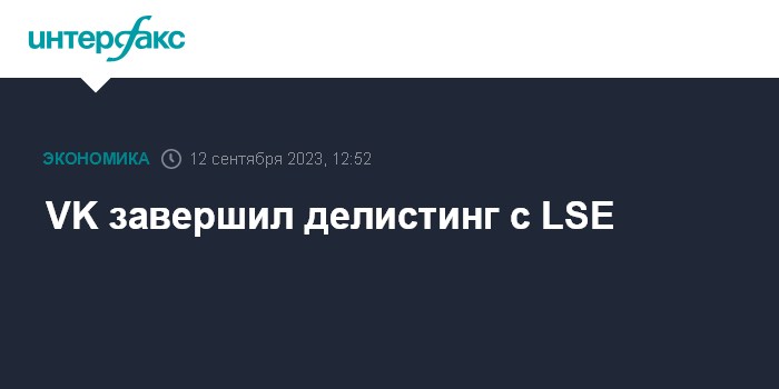 Москва. 12 сентября. INTERFAX.RU - Интернет-холдинг VK сообщил, что завершил процедуру делистинга ГДР и еврооблигаций на Лондонской фондовой бирже (LSE).