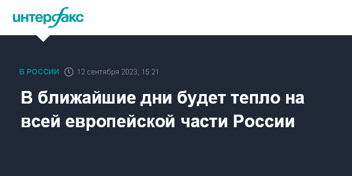 Москва. 12 сентября. INTERFAX.RU - В ближайшие дни на европейской части России ожидается примерно одинаковая погода, температура воздуха составит около 20 градусов тепла, сообщил "Интерфаксу" научный руководитель Гидрометцентра России Роман Вильфанд.