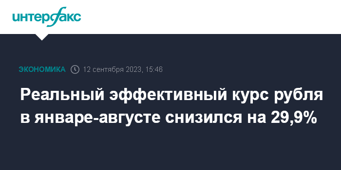 В январе-августе 2023 года реальный эффективный курс рубля снизился на 29,9%.