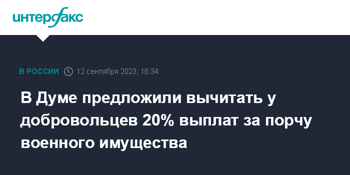 В Думе предложили вычитать у добровольцев 20% выплат за порчу военного имущества