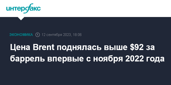Цена Brent поднялась выше $92 за баррель впервые с ноября 2022 года