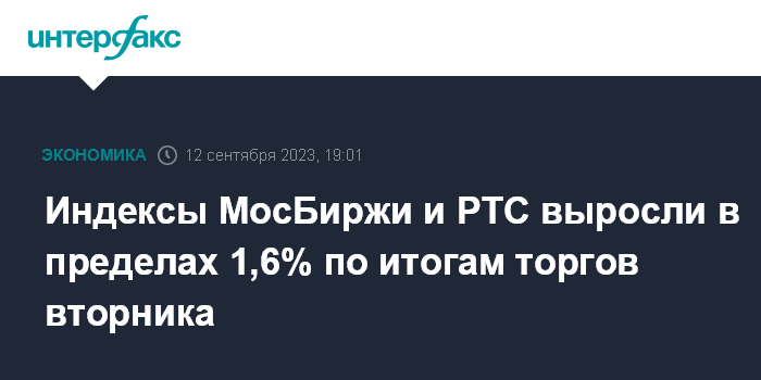 Индексы МосБиржи и РТС выросли в пределах 1,6% по итогам торгов вторника