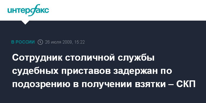 Москва. 26 июля. INTERFAX.RU - Сотрудник столичной службы судебных приставов задержан по подозрению в получении взятки в 1 млн 200 тыс. рублей.