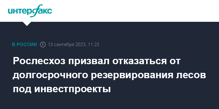 Москва. 13 сентября. INTERFAX.RU - Необходимо отказаться от резервирования лесных участков на длительный срок при реализации инвестпроектов, заявил на форуме "Леса России" глава Рослесхоза Иван Советников.