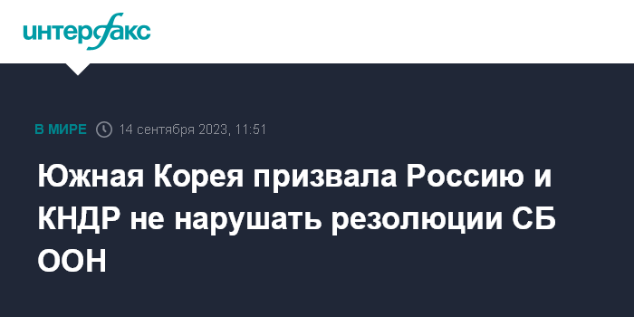 Южная Корея призвала Россию и КНДР не нарушать резолюции СБ ООН