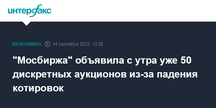"Мосбиржа" объявила с утра уже 50 дискретных аукционов из-за падения котировок