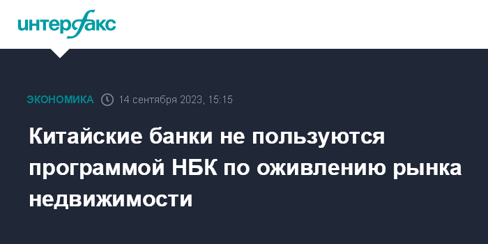 Москва. 14 сентября. INTERFAX.RU - Китайские банки практически не воспользовались флагманской программой кредитования Народного банка Китая, нацеленной на оживление обремененного долгами рынка недвижимости, пишет Financial Times.