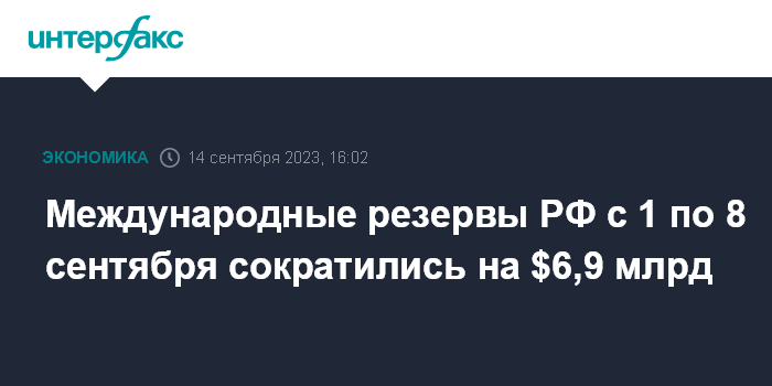 Международные резервы РФ с 1 по 8 сентября сократились на $6,9 млрд