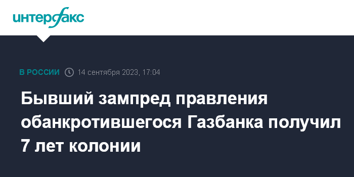 Бывший зампред правления обанкротившегося Газбанка получил 7 лет колонии