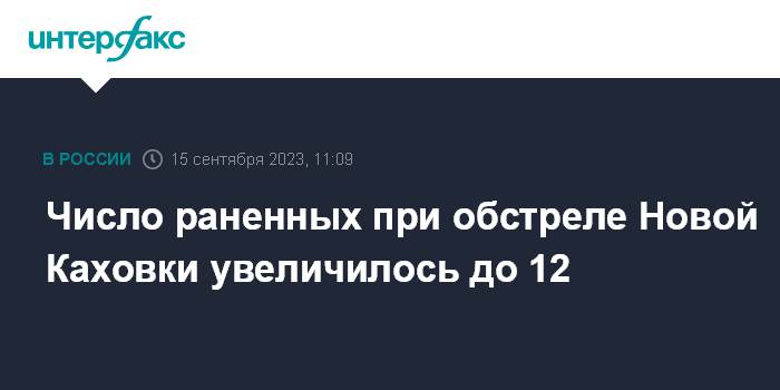 Москва. 15 сентября. INTERFAX.RU - Более десяти человек пострадали в результате обстрела жилого квартала Новой Каховки на левом берегу Днепра в Херсонской области со стороны вооруженных сил Украины в пятницу, сообщили журналистам в оперативном штабе города.