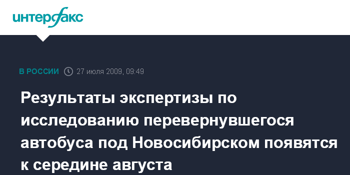 Москва. 27 июля. INTERFAX.RU - Главное следственное управление при ГУВД по Новосибирской области, взявшее под свой контроль расследование причин крупного ДТП под Новосибирском, где погибли восемь человек, 39 пострадали, проводит техническую экспертизу автобуса.