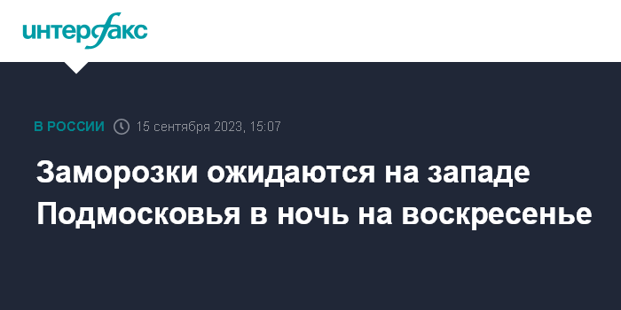 В ночь на воскресенье в столичном регионе будет "эффект сентябрьского антициклона", когда ночью в отсутствии облаков или небольшой облачности будет заметное понижение температуры, "в Москве и области будет от ноля до плюс 5 градусов, а на западе Подмосковья - местами слабые заморозки до минус 2 градусов в ночь". При этом, заморозки возможны на северо-западе и юго-западе Московской области в районах, где "большая теплопроводность почвы, там, где торфяники".