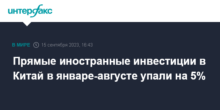 Прямые иностранные инвестиции в Китай в январе-августе упали на 5%