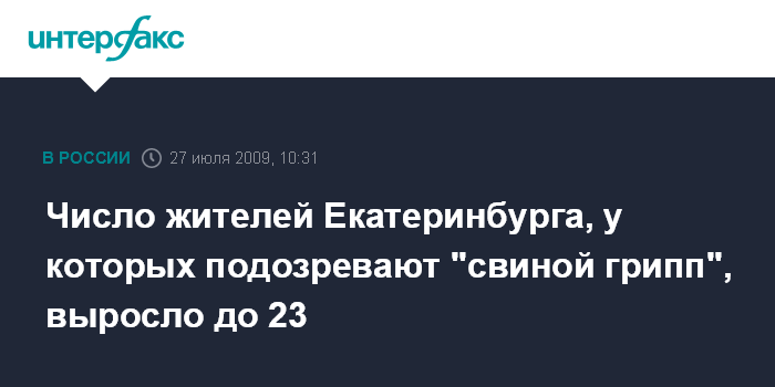 Москва. 27 июля. INTERFAX.RU - В Екатеринбурге "свиной грипп" подозревают уже у 23 человек, 15 из них госпитализированы.