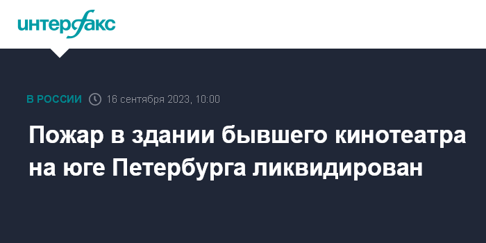 Москва. 16 сентября. INTERFAX.RU - Пожарные потушили трехэтажное здание бывшего советского кинотеатра "Слава" на юге Петербурга, сообщается в телеграм-канале регионального управления МЧС в субботу.