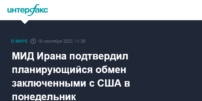 Bloomberg со ссылкой на источники ранее в сентябре сообщал, что США и Иран в соответствии с ранее достигнутым соглашением могут обменяться заключенными 18 сентября.