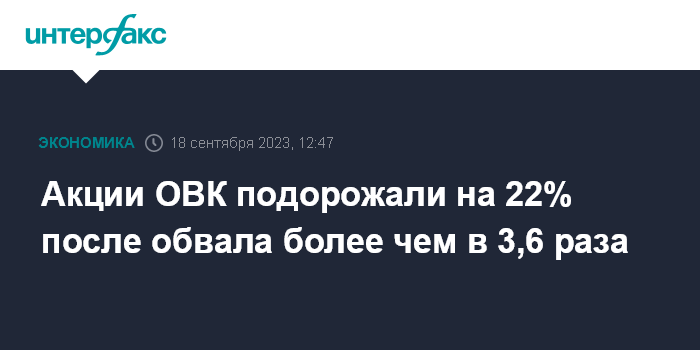 Акции ОВК подорожали на 22% после обвала более чем в 3,6 раза