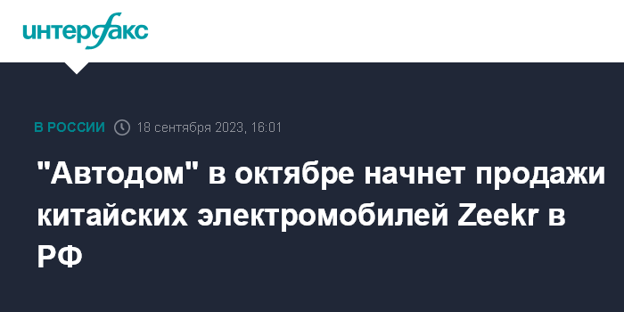 Москва. 18 сентября. INTERFAX.RU - Дилер премиальных автомобильных брендов "Автодом" начинает продажи трех моделей китайских электромобилей Zeekr на российском рынке, сообщила пресс-служба компании.