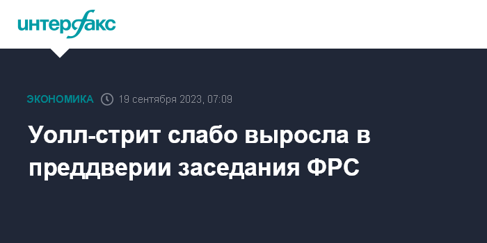 Решение Федрезерва по ключевой процентной ставке станет известно 20 сентября. Эксперты Уолл-стрит практически уверены в том, что ФРС оставит базовую ставку неизменной на уровне 5,25-5,5% годовых.