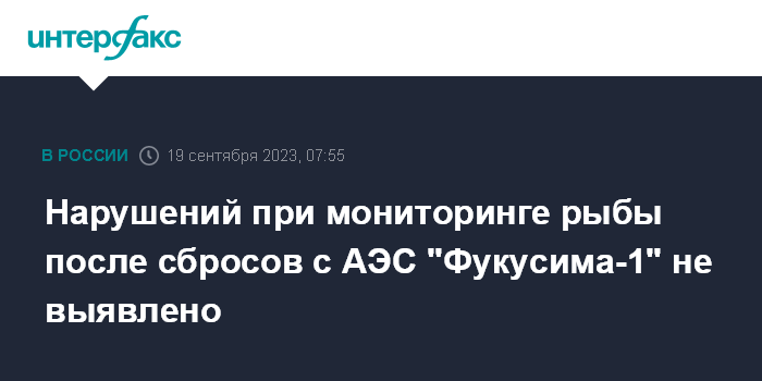 Нарушений при мониторинге рыбы после сбросов с АЭС "Фукусима-1" не выявлено