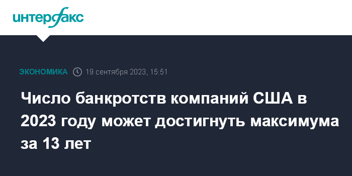 Число банкротств компаний США в 2023 году может достигнуть максимума за 13 лет
