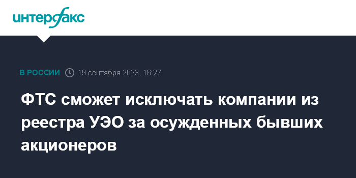ФТС сможет исключать компании из реестра УЭО за осужденных бывших акционеров