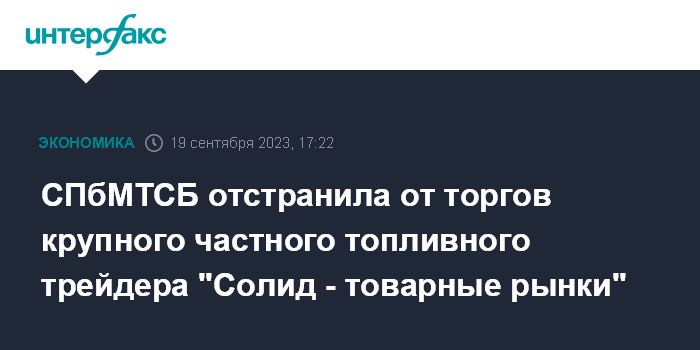 СПбМТСБ отстранила от торгов крупного частного топливного трейдера "Солид - товарные рынки"