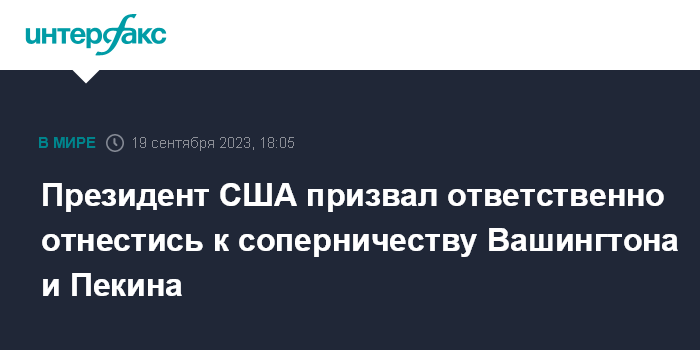 Президент США призвал ответственно отнестись к соперничеству Вашингтона и Пекина