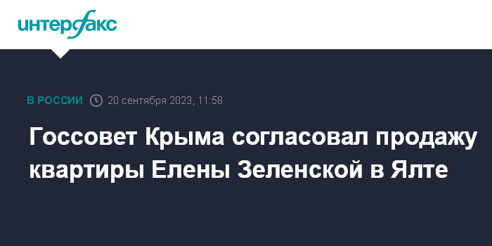 "Согласовали отчуждение ряда объектов, включая жилые помещения, в том числе квартиру Елены Зеленской (ее рыночная стоимость составляет ориентировочно 23,9 млн рублей), объекты санаторно-курортной отрасли, торговые и коммерческие помещения", - написал Константинов в своем телеграм-канале по итогам заседания парламента Крыма.