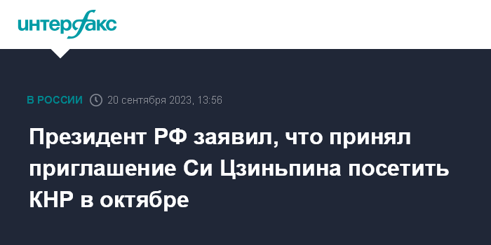 Президент РФ заявил, что принял приглашение Си Цзиньпина посетить КНР в октябре
