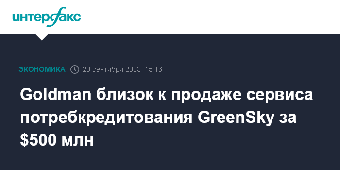 Сумма сделки может составить порядка $500 млн. Goldman купил GreenSky около полутора лет назад примерно за $1,7 млрд.