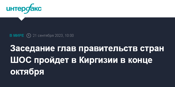 Москва. 21 сентября. INTERFAX.RU - Заседание Совета глав правительств государств-членов ШОС состоится 26 октября в Бишкеке, сообщает в четверг пресс-служба МИД Киргизии.