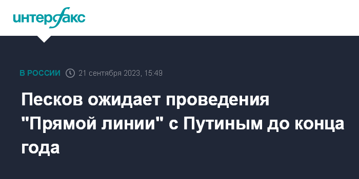 Москва. 21 сентября. INTERFAX.RU - Сроки проведения "Прямой линии с президентом" еще не определены, но она может пройти до конца года, заявил пресс-секретарь президента Владимира Путина Дмитрий Песков.