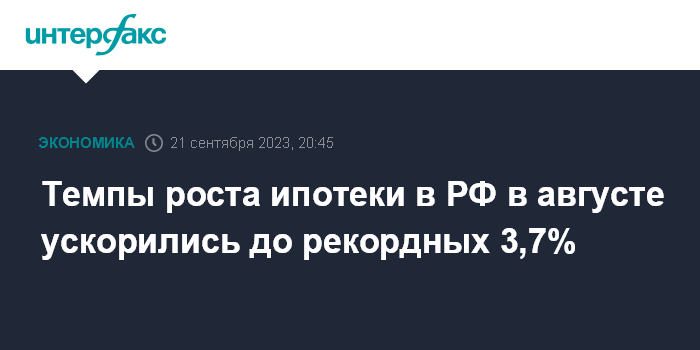 Темпы роста ипотеки в РФ в августе ускорились до рекордных 3,7%
