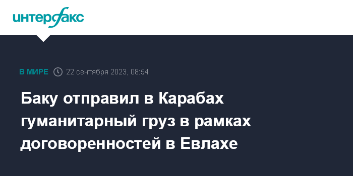 Баку отправил в Карабах гуманитарный груз в рамках договоренностей в Евлахе
